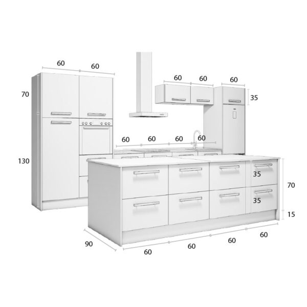 * No incluye: Electrodomésticos / Costados decorativos / Grifo / Fregadero